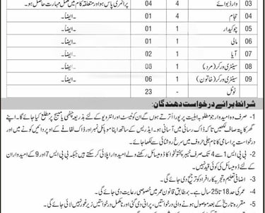 Applications submitted on plain paper along with verified copies of educational and experience certificates, diplomas, CNIC, domicile, and recent photographs must be sent to the address provided below.