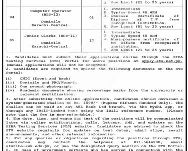Applicants must submit their applications online via the SIBA Testing Services (STS) Portal for the above-mentioned positions at apply.sts.net.pk.