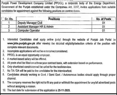 Explore exciting job opportunities at the Energy Department, Government of Punjab. Apply for various positions including Deputy Manager Civil, Assistant Manager HR & Admin, and Computer Operator at "energy department punjab jobs"