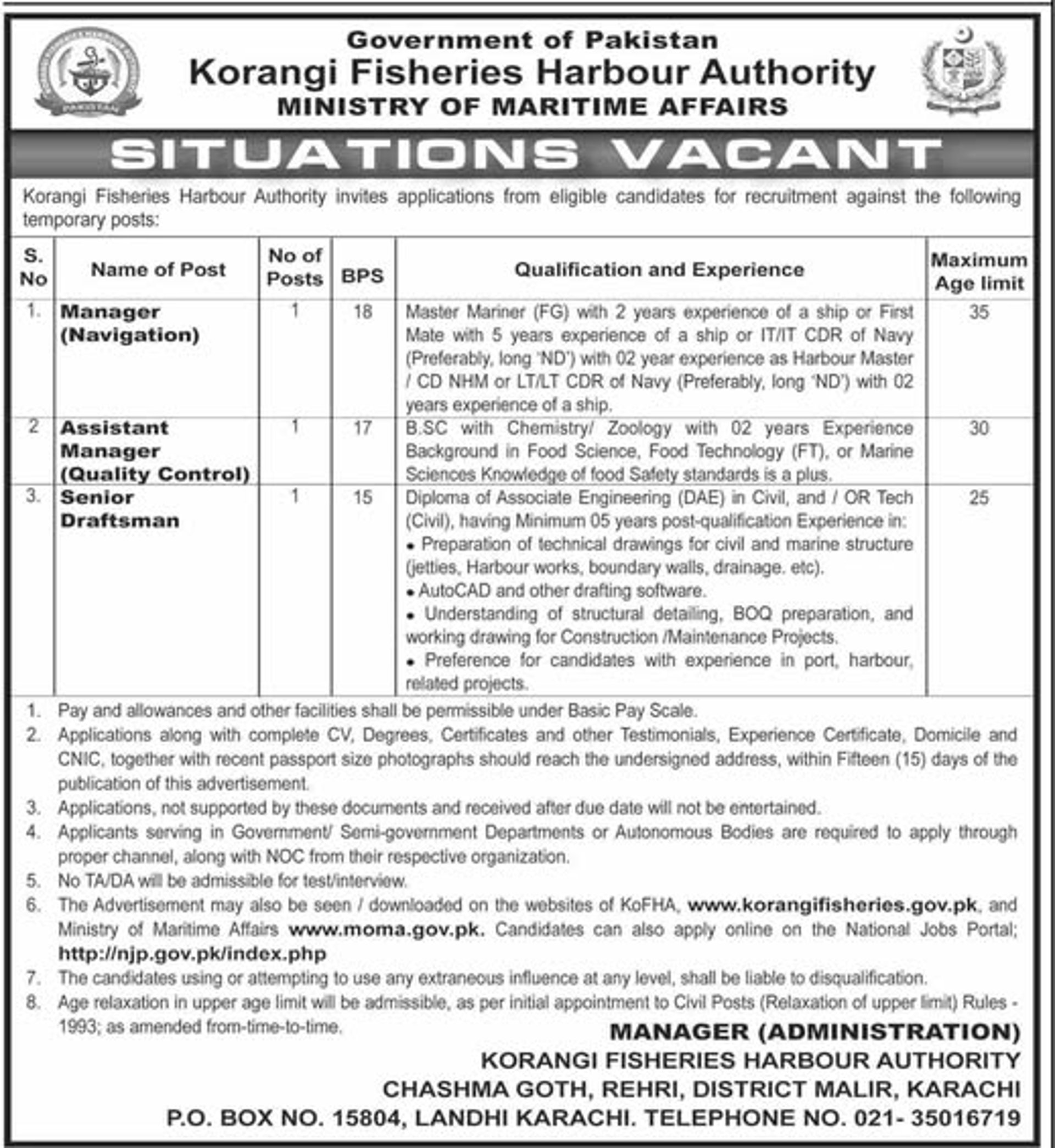 Explore exciting career opportunities at Korangi Fisheries jobs Harbour Authority for 2025. Apply online through the National Jobs Portal for various management and technical positions in fisheries and ...