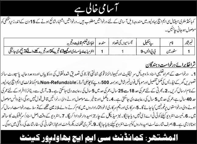 Discover the latest CMH Bahawalpur jobs for 2025, including a position for Storeman (BPS-09). Combined Military Hospital is inviting applications from qualified candidates under various quotas. Ensure you meet the eligibility criteria and apply today!