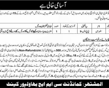 Candidates should attach with the application a paid postal order of Rs. 500/- (Non-Refundable) in favor of Commanding Officer CMH Bahawalpur.
