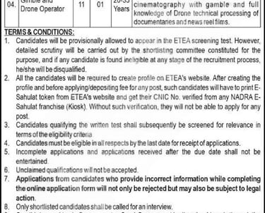 Interested candidates must apply online using the application form available at www.etea.edu.pk