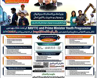 NAVTTC is Pakistan's leading government organization offering vocational training and technical training. Empowering youth with job-ready skills through certified courses and hands-on experience, NAVTTC helps students secure jobs locally and internationally.