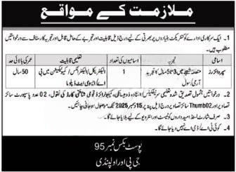 Discover the latest po box 95 rawalpindi jobs, inviting DAE-qualified candidates to apply for a government supervisor position. Competitive salary and easy application process for eligible Pakistani nationals aged 30-50 with relevant experience.