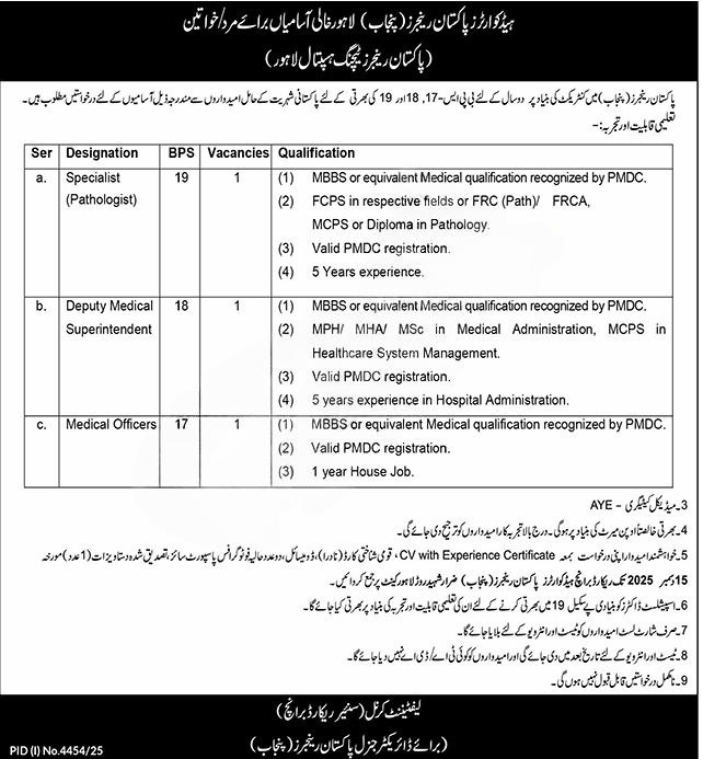 Punjab Rangers Jobs Teaching Hospital Job Openings