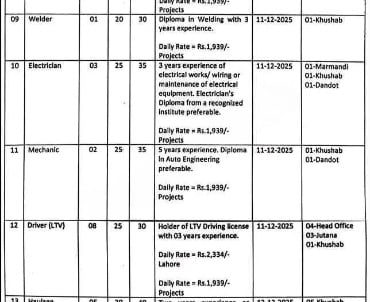 Successful candidates will be notified according to the daily wage rates approved by the Finance Department of Punjab.